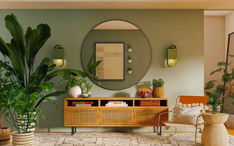 • کنسول و آینه دکوراتیو: یک کنسول ساده با آینه دکوراتیو بالای آن، ورودی خانه را چشمگیر می‌کند.